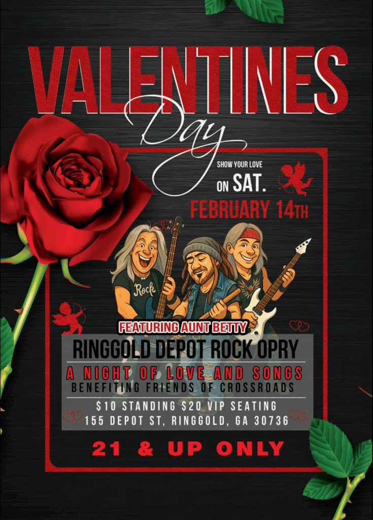 The first show of the year features ’80s rock band, Aunt Betty, live on the Depot stage! Come on out for A Night of Love and Songs at The Ringgold Depot Rock Opry on February 14th. Attendees must be 21 or older. Celebrate Valentines Day the right way at RDO!