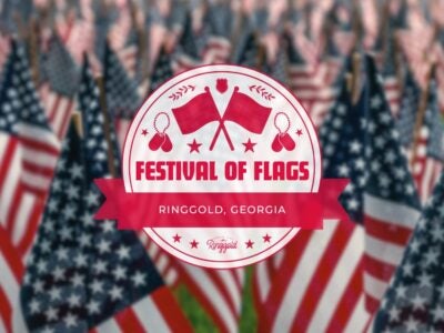 The Festival of Flags is a bi-annual celebration in Ringgold, GA, in which over 1,400 flags and crosses are raised to honor fallen soldiers.